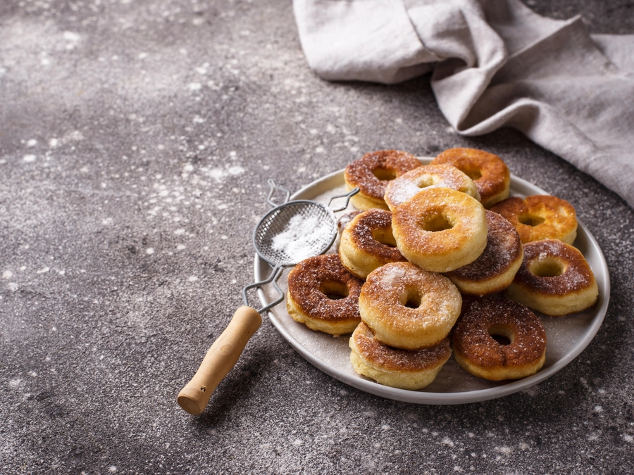 Lightly brush donut bites with melted butter or spray oil, then toss them in the coating for a classic donut-style finish.