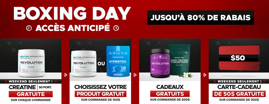 Créatine 500g ou Hydration+ gratuit à partir de $150!