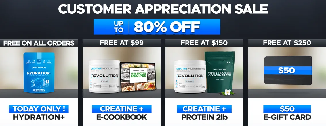 • FREE Creatine 20 Serv. on All orders